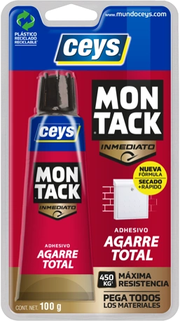 Adhesivo de montaje de Agarre Total. Gracias a su tecnología exclusiva DOUBLE GRIP, pega y fija RÁPIDO y ULTRA FUERTE.