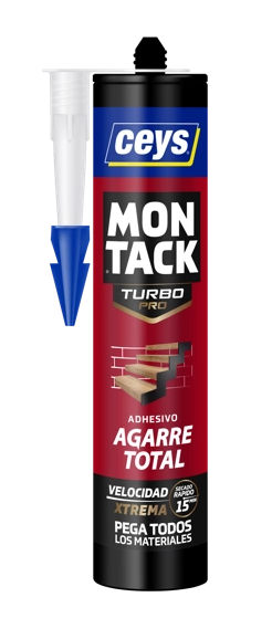 Adhesivo de montaje TURBO de Agarre Total. Gracias a su tecnología exclusiva DOUBLE GRIP pega y fija ULTRA RÁPIDO y fuerte. Las piezas quedan fijadas a los 15 min.