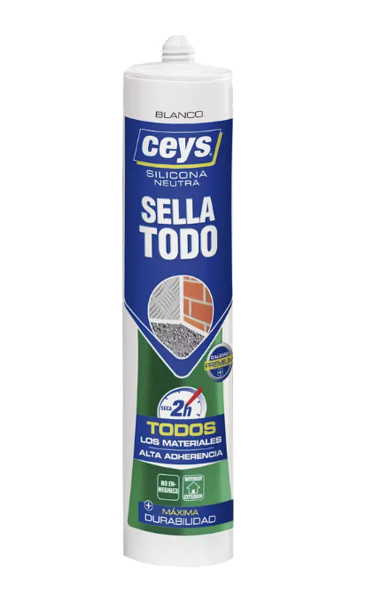 Silicona neutra de calidad y durabilidad superior, que sella todo tipo de materiales. Incorpora tecnología Xpress, por lo que en tan solo 2 horas la junta resiste al agua.