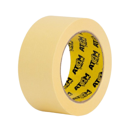 La cinta de carrocero Atom cuenta con un soporte de papel ligeramente crepado cuyo adhesivo es de caucho natural de alto rendimiento. Cuenta con un buen tack, siendo totalmente compatible, por ejemplo, con pinturas de base solvente. Se adapta perfectamente a superficies irregulares y cuenta con facilidad tanto de corte como desenrollado sin residuos.